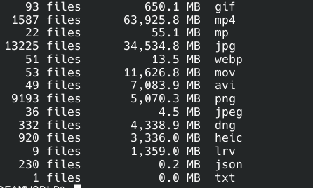 A quick terminal command gives us a breakdown of every file type that is in there.